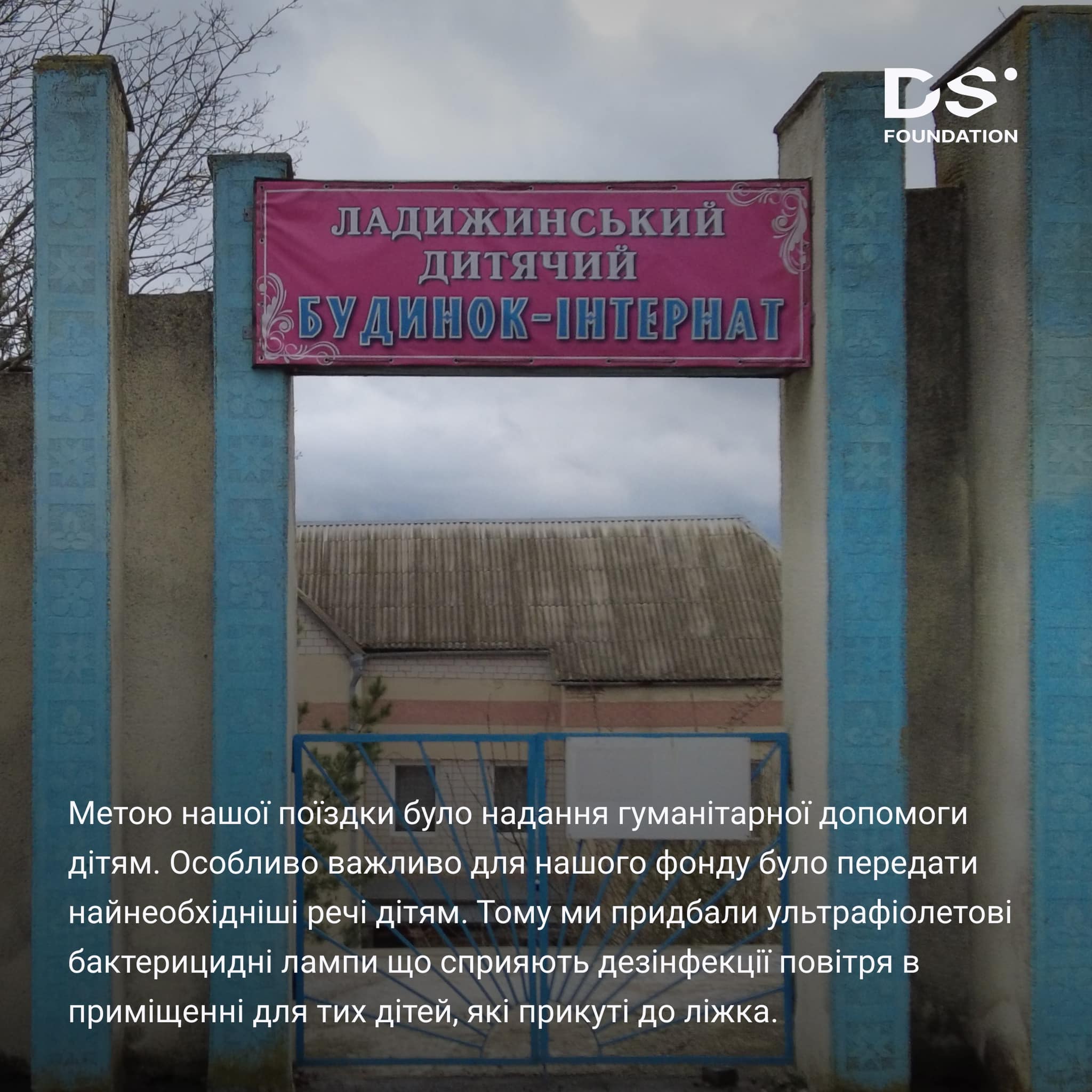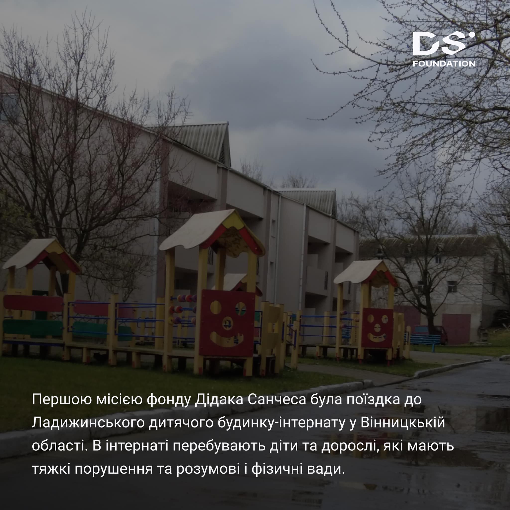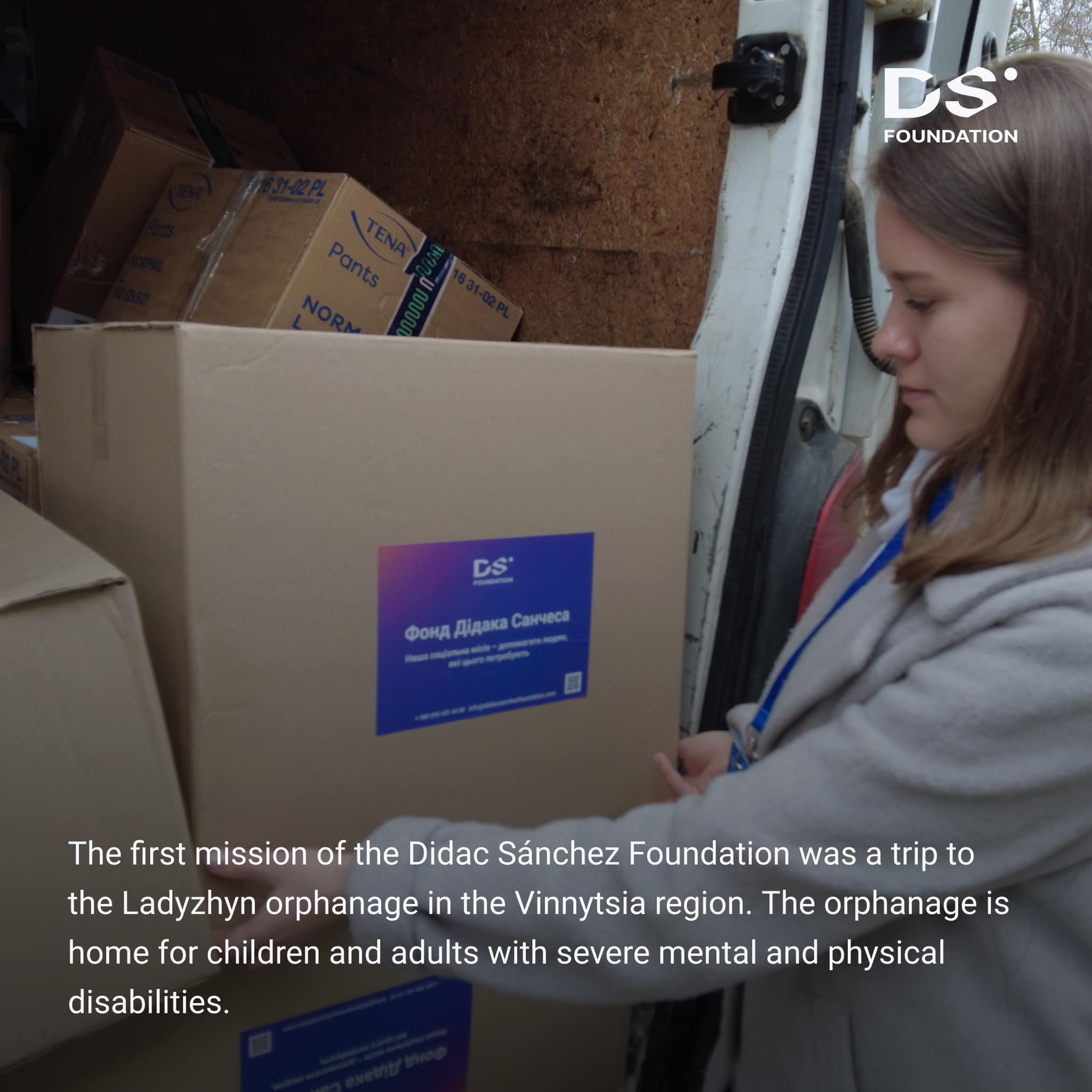 La Fundación Didac Sánchez inicia sus actividades en Ucrania con un viaje al Orfanato de Ladyzhyn en la región de Vinnitsa. Esta institución alberga a niños y adultos con ciertas discapacidades físicas y mentales. La fundación donó productos de higiene personal, juguetes y lámparas ultravioleta bactericidas que ayudarán a desinfectar las instalaciones.